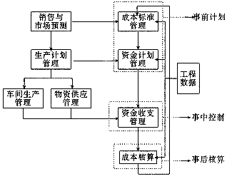 資金計(jì)劃管理相應(yīng)于物料計(jì)劃從宏觀計(jì)劃到微觀計(jì)劃的過渡,其功能及內(nèi)容有所不同.在企業(yè)中,常使用的資金計(jì)劃有年度財(cái)務(wù)收支計(jì)劃、月度財(cái)務(wù)收支計(jì)劃.資金的收支計(jì)劃根據(jù)產(chǎn)品(物料)的生產(chǎn)計(jì)劃和成本標(biāo)準(zhǔn)編制,作為控制資金收支的依據(jù).成本管理和資金計(jì)劃管理構(gòu)成資金流的事前計(jì)劃.