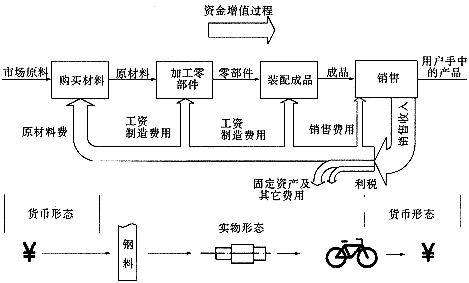 企業(yè)的生產(chǎn)過程是給物資賦予勞動(dòng)、知識(shí)和信息,改變其形狀、功能或性質(zhì)的過程,也是資金的投入與增值的過程,是物流與資金流相互轉(zhuǎn)化、相互作用、相互統(tǒng)一的辨證統(tǒng)一過程.物資運(yùn)動(dòng)是資金運(yùn)動(dòng)的基礎(chǔ),物資運(yùn)動(dòng)決定著資金運(yùn)動(dòng),物資運(yùn)動(dòng)狀況的正常與否,決定著資金運(yùn)動(dòng)狀況的好壞;資金運(yùn)動(dòng)也反映著物資運(yùn)動(dòng),并對(duì)物資運(yùn)動(dòng)具有積極的影響作用.通過對(duì)資金運(yùn)動(dòng)是否通暢的分析,可以觀察企業(yè)供、產(chǎn)、銷等活動(dòng)是否正常的進(jìn)行,并可根據(jù)存在的問題,采取相應(yīng)的措施,使資金運(yùn)動(dòng)與物資運(yùn)動(dòng)相結(jié)合,從而提高生產(chǎn)經(jīng)營的效益.資金運(yùn)動(dòng)和物資運(yùn)動(dòng)相互結(jié)合的關(guān)系,體現(xiàn)了制造工業(yè)企業(yè)再生產(chǎn)過程的實(shí)物形態(tài)和價(jià)值形態(tài)的必然聯(lián)系.