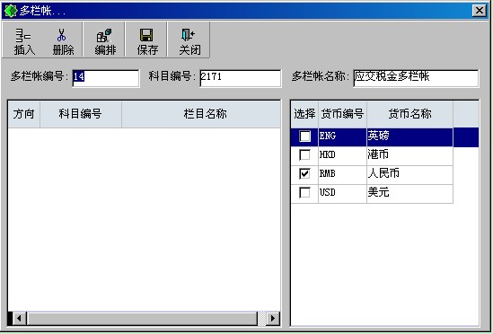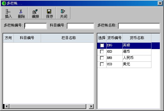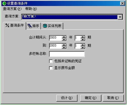 由用戶自定義多欄賬名稱,但在進行查詢前幾須先定義好。定義好后以后在查詢時可不再進行定義。 |